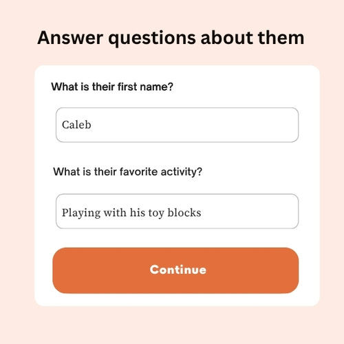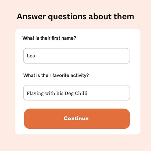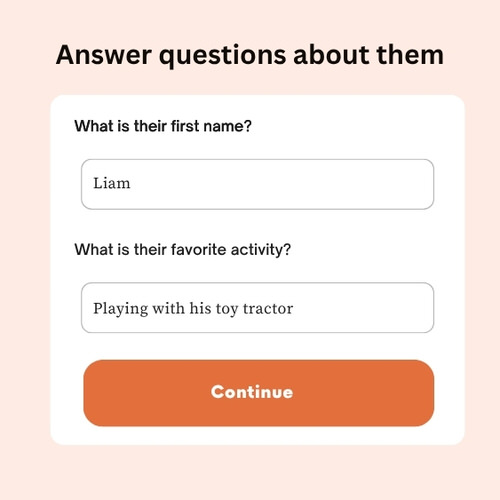 A heartfelt keepsake that turns your loved one’s interests, hobbies, and little quirks into a story made just for them. Every page is uniquely crafted to celebrate their personality and the joy they bring.