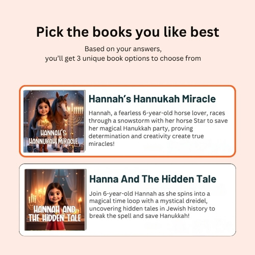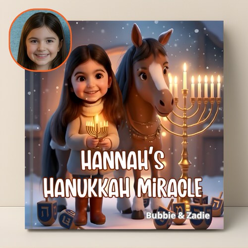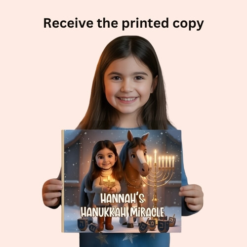 A heartwarming Hanukkah story starring your child, filled with candles, dreidels, and family traditions—personalized with their favorite toys, people, and moments that bring the Festival of Lights to life just for them.