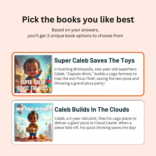 A truly one-of-a-kind story where your child becomes the hero of their own adventure, filled with their favorite toys, interests, and moments that make them smile. Every page is uniquely crafted just for them.